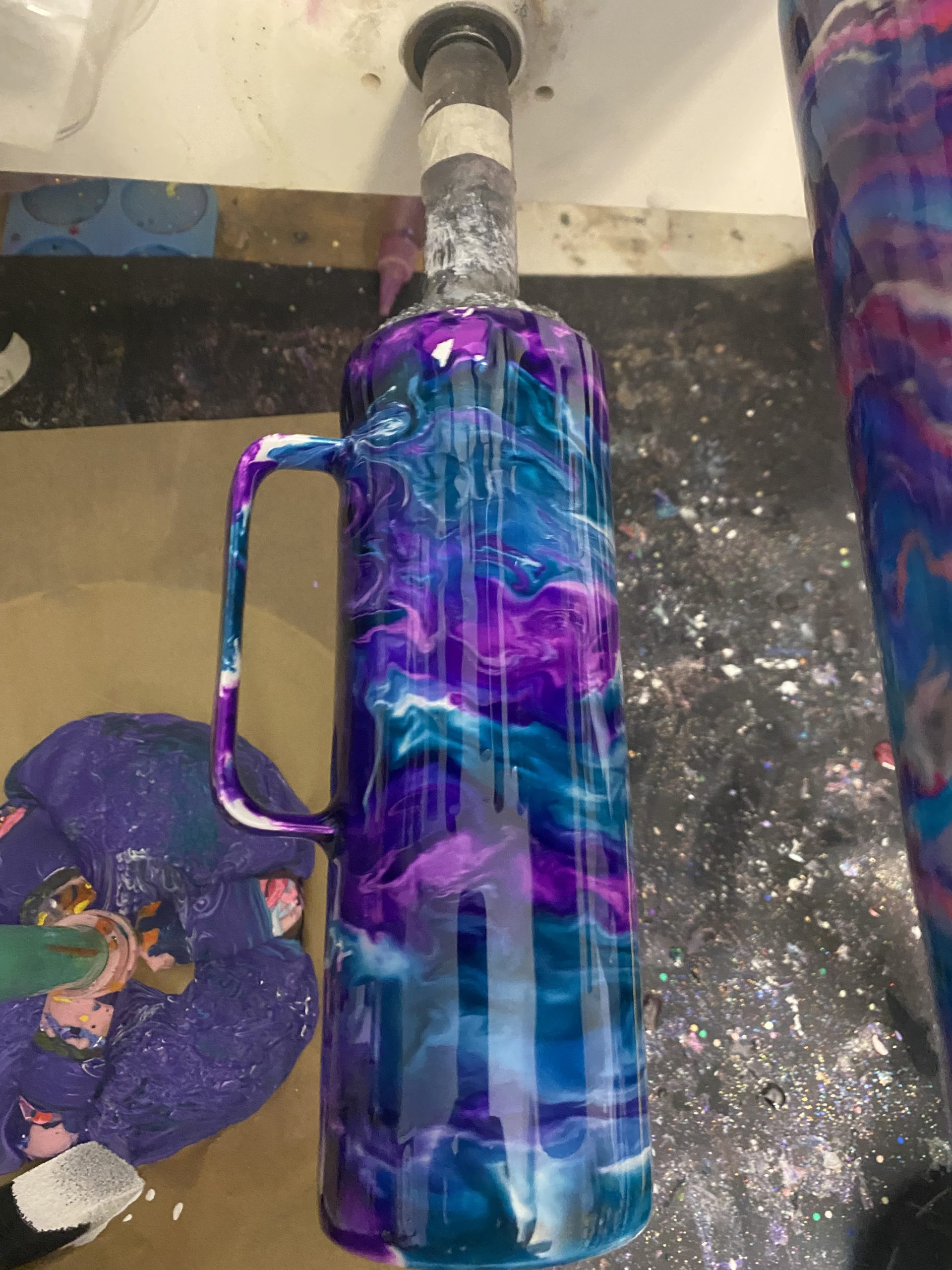 20oz double walled stainless steel tumbler. This tumbler is double wall vacuum insulated to keep hot drinks hot and cold drinks cold. This is a one of a kind item from Miles of Mischief studios.