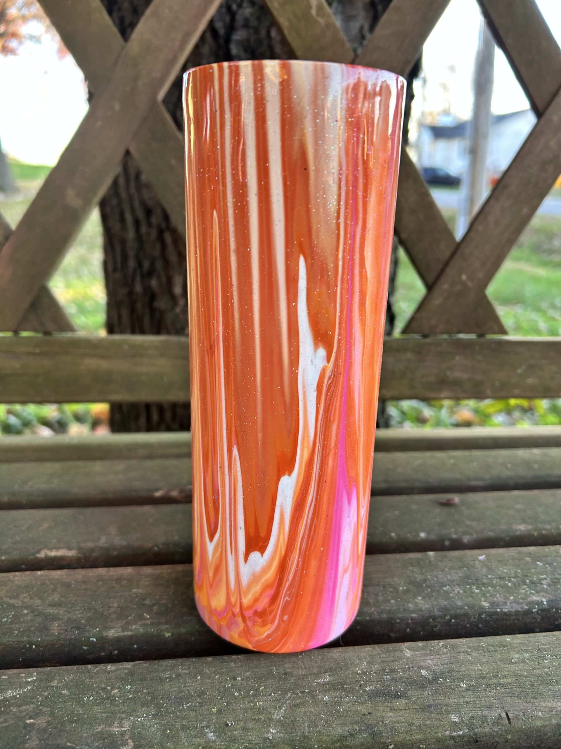 20oz double walled stainless steel tumbler. This tumbler is double wall vacuum insulated to keep hot drinks hot and cold drinks cold. This is a one of a kind item from Miles of Mischief studios.