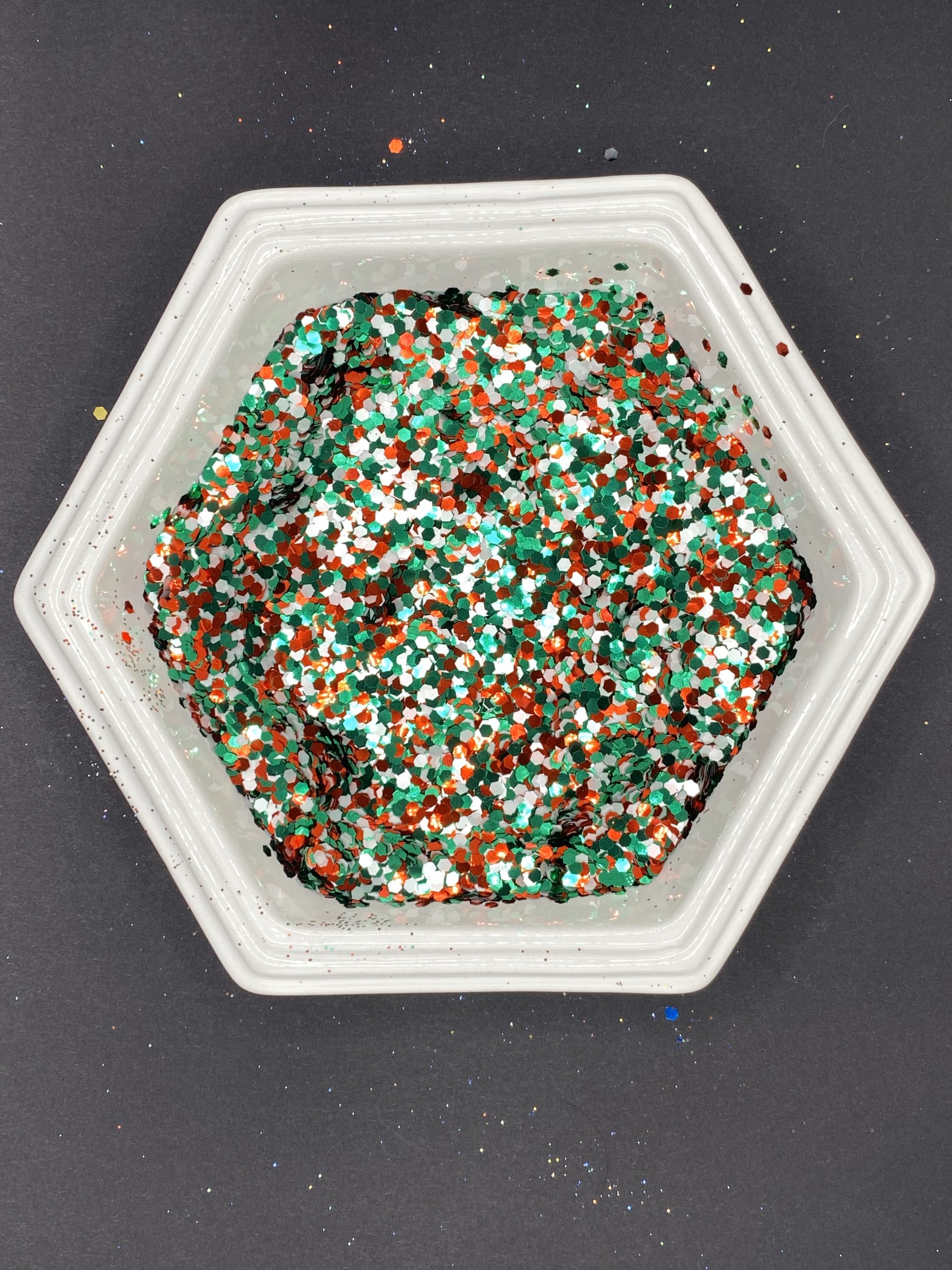2 ounces of “Christmas Cheer” chunky cut glitter made from a variety of custom blended Mischief Glitters.