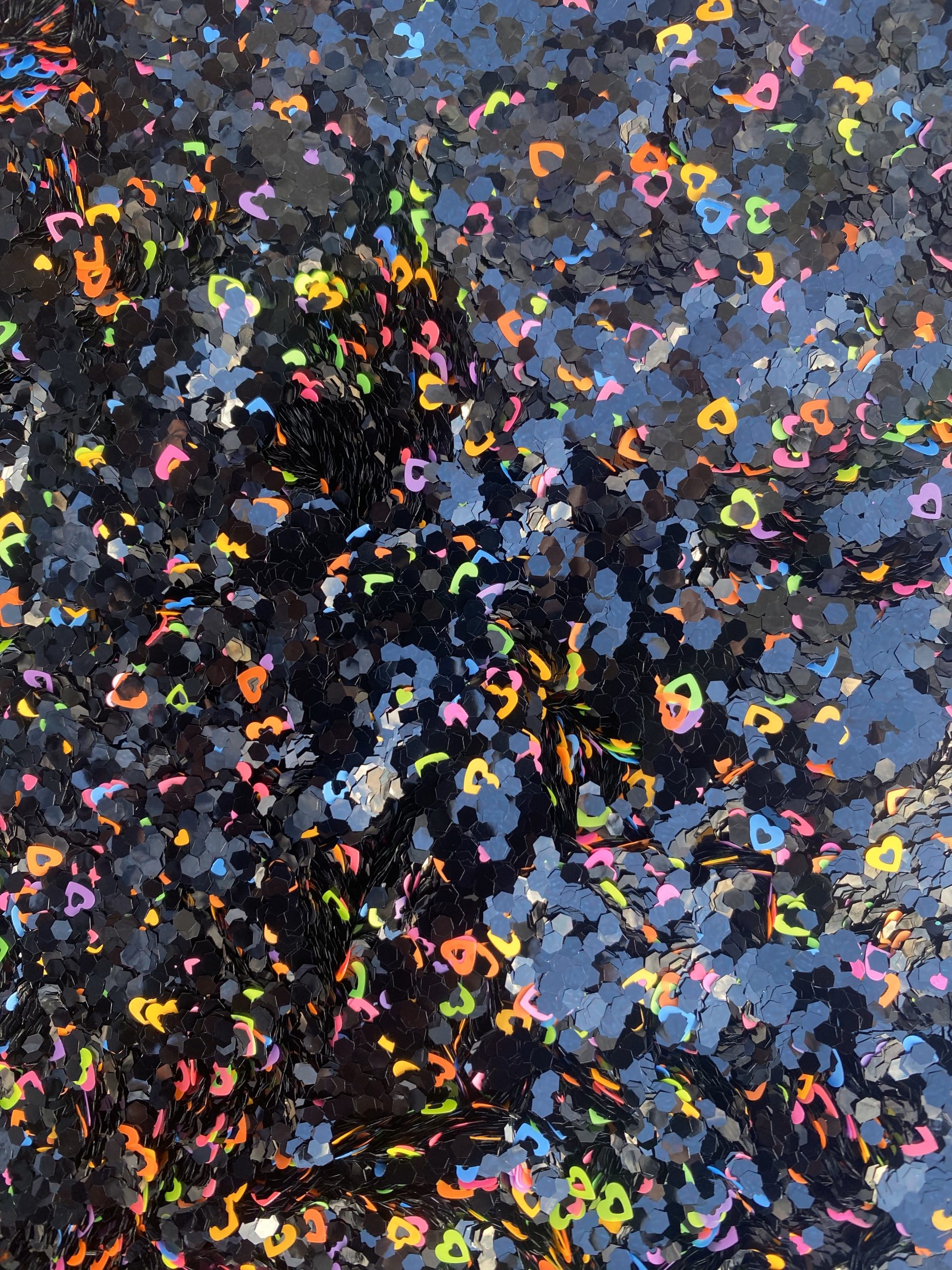 2 ounces of “Frankly Lisa” chunky cut glitter made from a variety of custom blended Mischief Glitters. “Frankly Lisa” contains neon heart glitter. Mischief Glitter is made in the USA using only the finest American made materials.