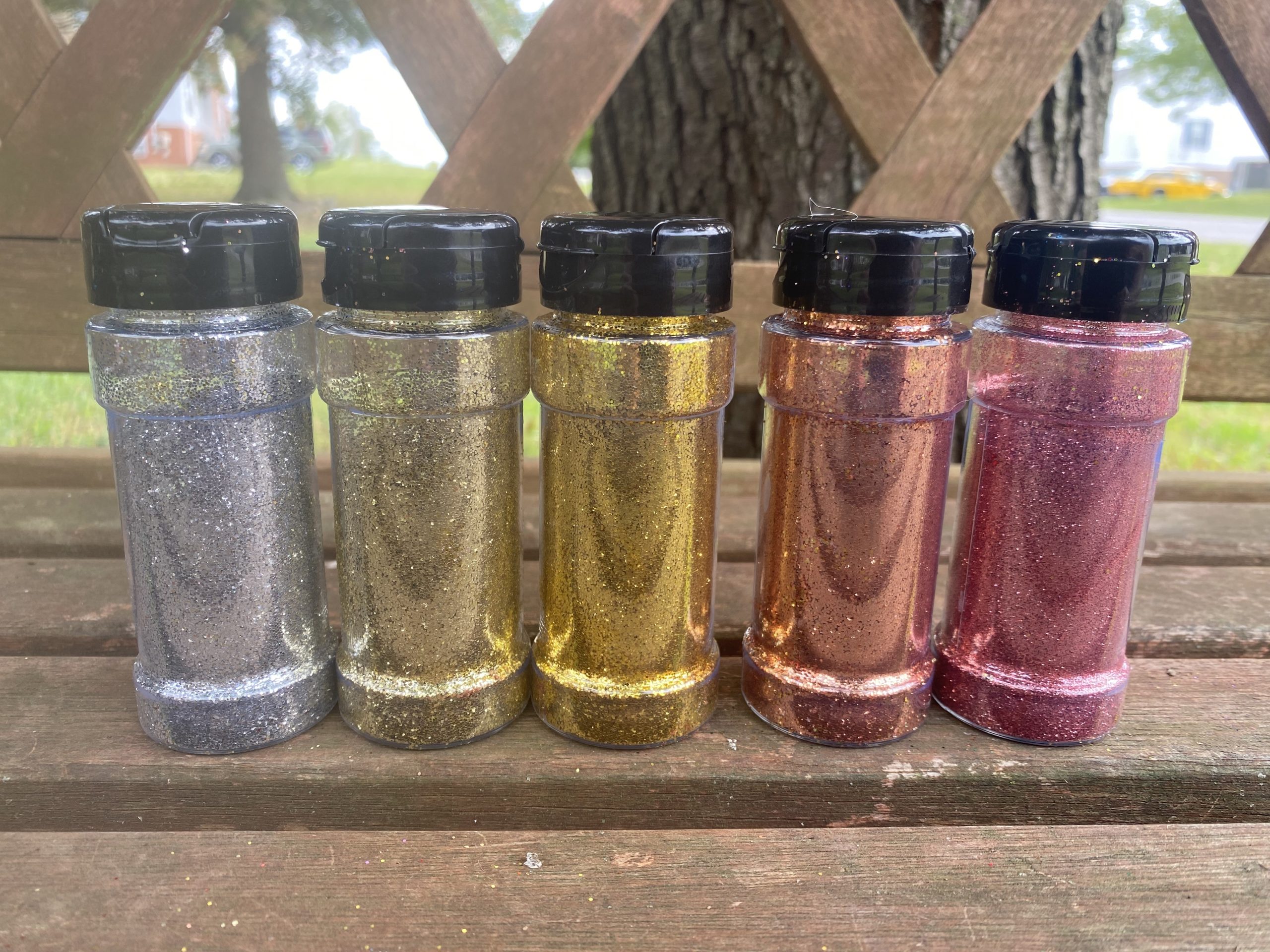 (5) individual 1 ounce containers consisting of the following colors from the Mischief Glitter “Metallics” collection: Rose Gold, Doubloon, Cosmic Crush, Shekel, and Copper Penny.