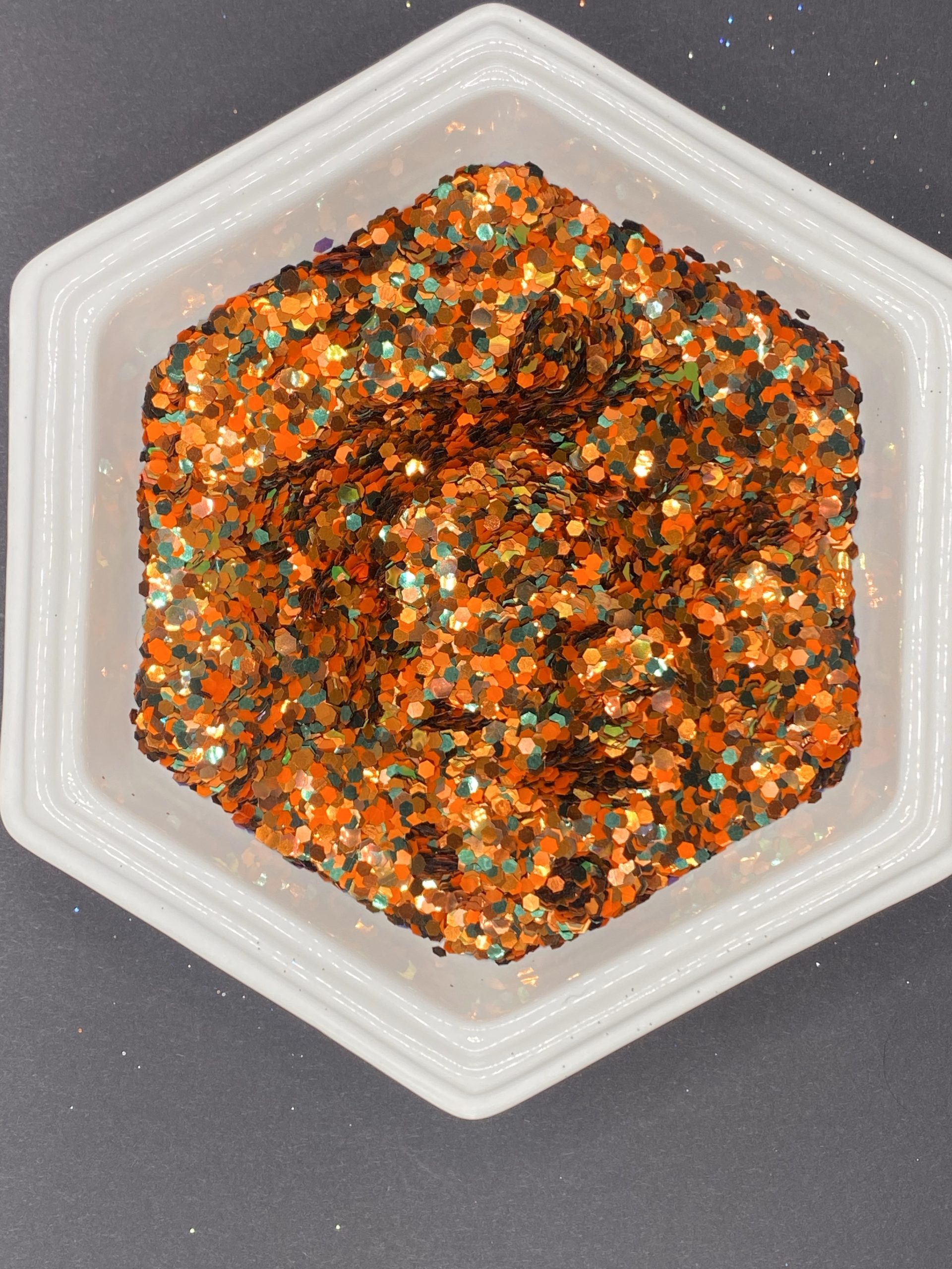 2 ounces of “Pumpkin King” chunky cut glitter made from a variety of custom blended Mischief Glitters.