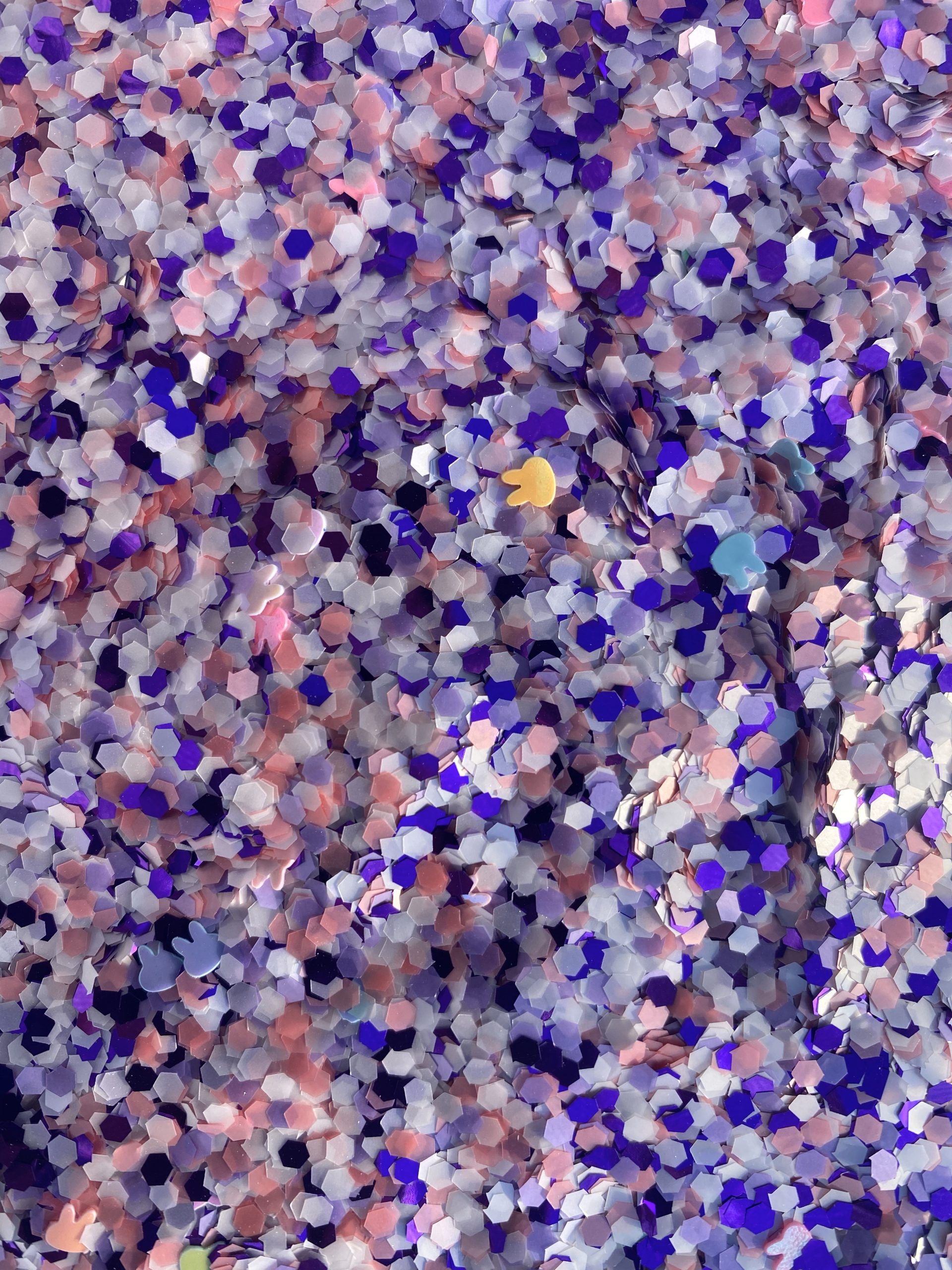 2 ounces of “Some Bunny Loves You” chunky cut glitter made from a variety of custom blended Mischief Glitters. “Some Bunny Loves You” contains some bunny head shaped glitter pieces. Mischief Glitter is made in the USA using only the finest American made materials.